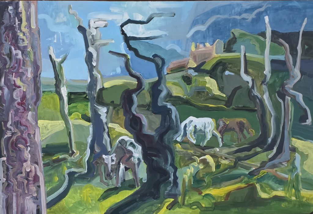 Ole hatte die Muse, die Geschichte zum Bild vor Ort zu erzählen. Was Luiza auf den ersten Blick sah und sie begeisterte, war der Mut, die expressive Malweise und die Farben! Ostermontag waren wir an diesem Ort erst vorbei geradelt.